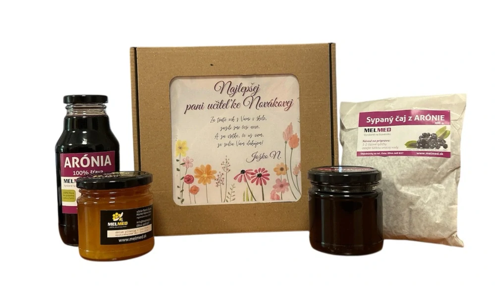 - Darčeková sada Arónia - Šťava 330ml, Čaj 100g, Med 300g, Džem 210g