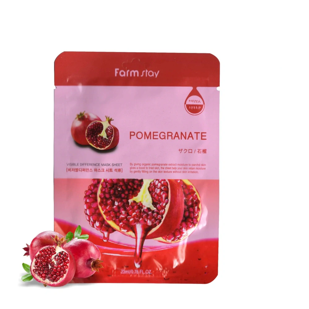 Látková maska s výťažkom z granátového jablka z línie Visible Difference od kórejskej značky Farm Stay. Poskytuje hĺbkovú hydratáciu, výživu a antioxidatívnu starostlivosť. Vďaka esenciám sa pokožka stáva jasnejšou, jemnejšou a pružnejšou.