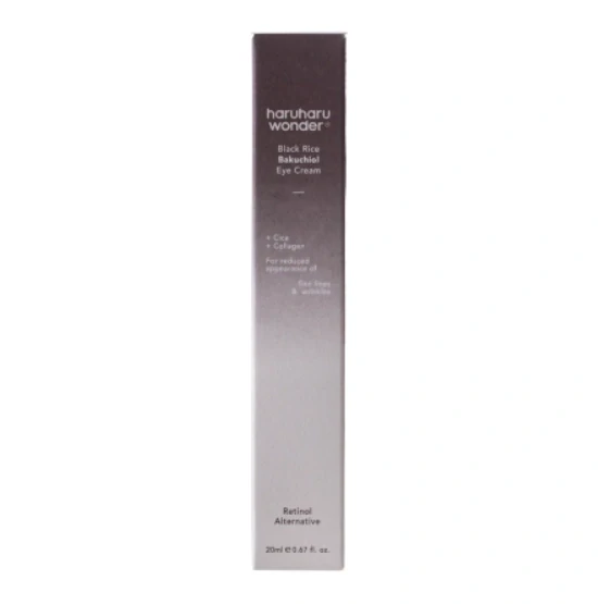 Haruharu Wonder - Black Rice Bakuchiol Eye Cream - očný krém proti vráskam. Obsahuje bakuchiol, alternatívu retinolu, ktorý pôsobí proti starnutiu, spevňuje a rozjasňuje, extrakt z čiernej ryže, ktorý má antioxidačné vlastnosti, kyselinu hyalurónovú, ktorá intenzívne hydratuje suchú pleť, adenozín a bambusový extrakt, ktoré spevňujú a redukujú výskyt vrások. Krém zosvetľuje tmavé kruhy pod očami a zanecháva pleť pružnú a hydratovanú.