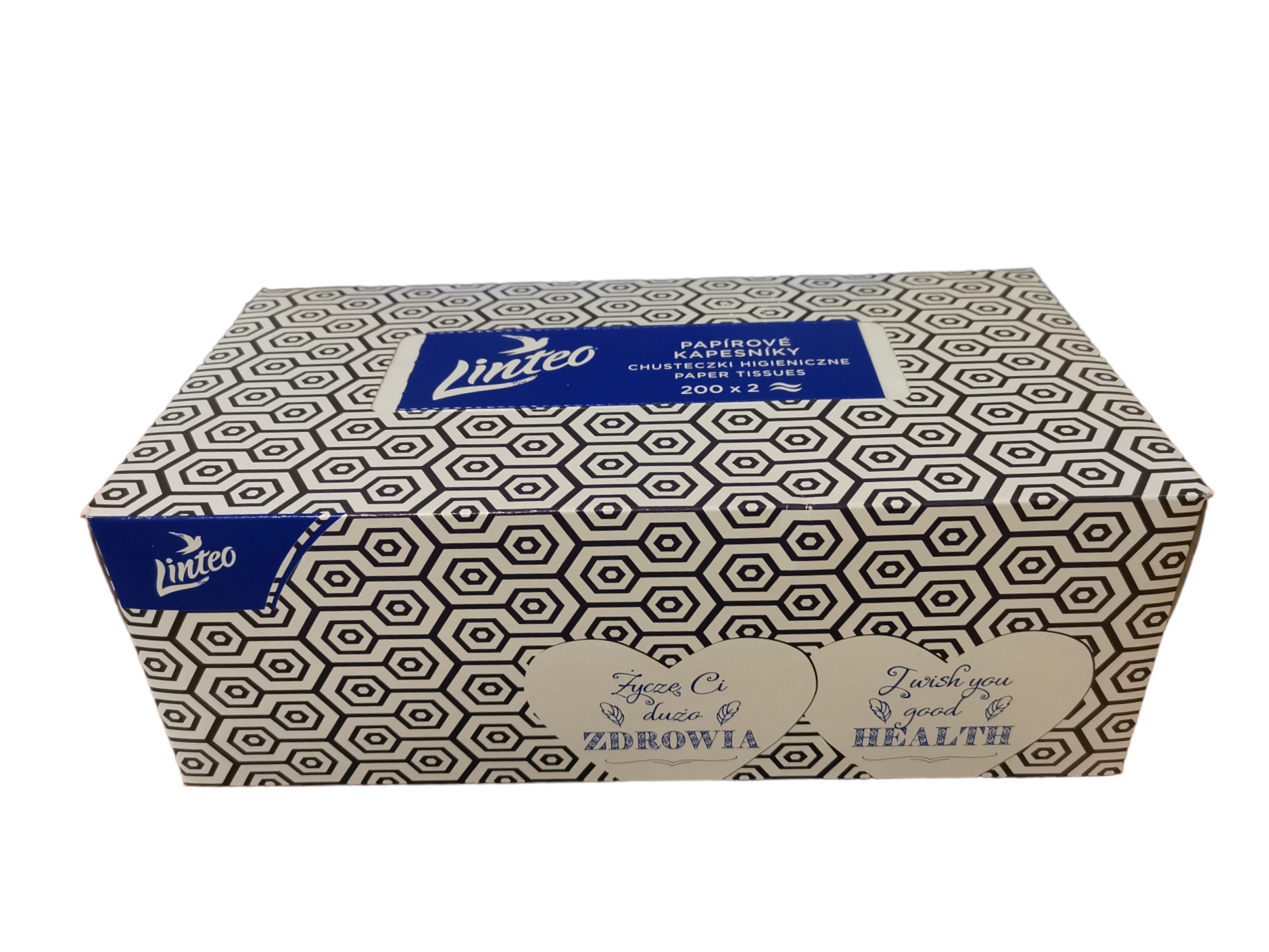 Linteo papierové vreckovky box Jemné biele dvojvrstvové papierové vreckovky Linteo Zaručia vysokú jemnosť, mäkkosť a pevnosť Balenie obsahuje 200 ks Zloženie 100% celulóza celý popis